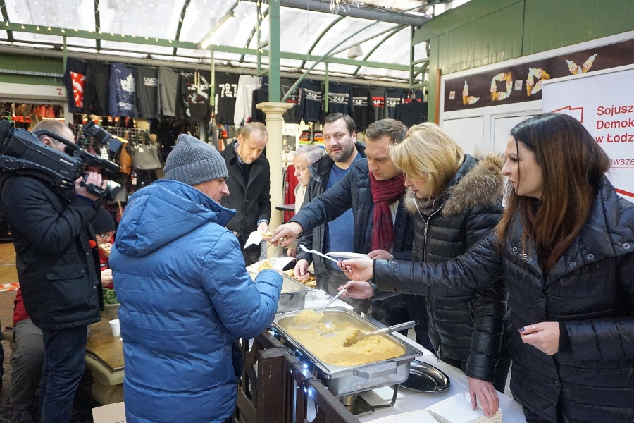 Każdego roku w Wigilię działaczki i działacze SLD przygotowują na Zielonym Rynku tradycyjny świąteczny poczęstunek dla łodzian. Na mieszkańców czekają typowe, wigilijne przysmaki takie, jak kapusta z grochem, czerwony barszcz czy pierogi.